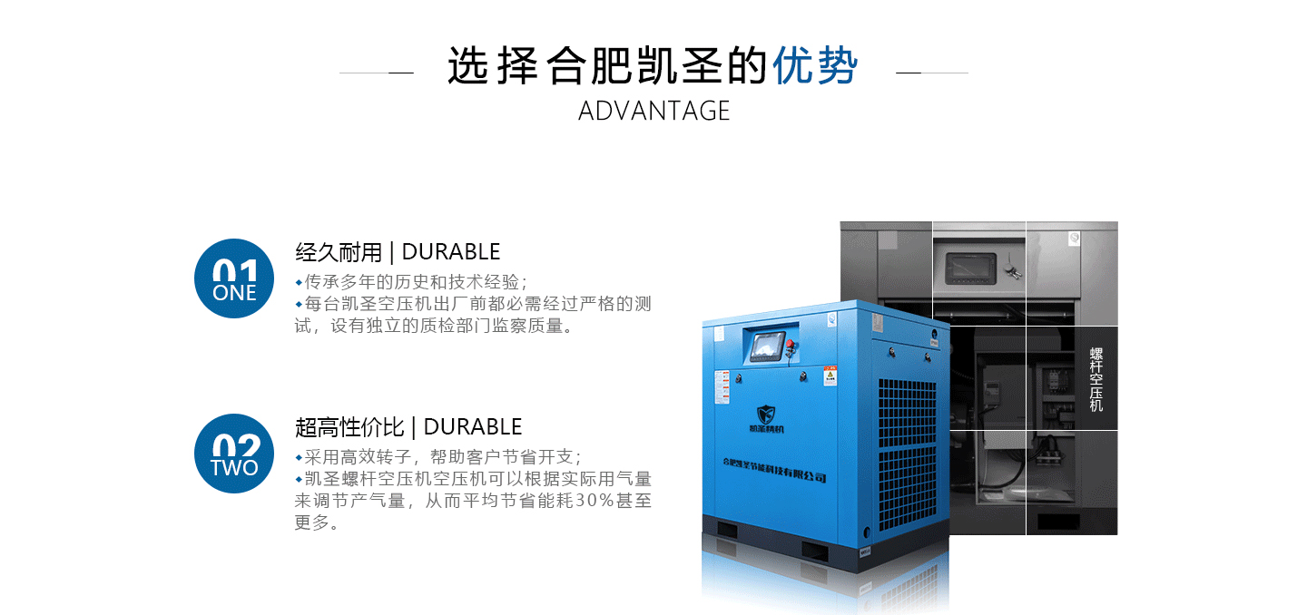 合肥凱圣節(jié)能科技有限公司是從事永磁變頻螺桿壓縮機系統的設計、制造、安裝、調試、維修與一體的公司。 在多年的螺桿空壓機研發(fā)與推廣歷程里,凱圣聚集和培養(yǎng)了大量壓縮機技術設計和管理人員,迅速發(fā)展成為集研究、生產、銷售、服務等環(huán)節(jié)為一體、嚴格按照標準執(zhí)行的企業(yè),公司成立開始,即以滿足客戶的實際需求為己任,大力開拓國內外節(jié)能型空壓機市場,并始終保持創(chuàng)新精神,全力研發(fā)更為節(jié)能的螺桿式空壓機,努力站在空壓機節(jié)能領域的排頭位置。 應用范圍:公司產品廣泛應用于機械、輕工、紡織、食品、石油、化工、冶金、礦山、電力、城建、醫(yī)學研究和科研等各行業(yè)中,將為節(jié)約能源做出巨大貢獻。公司秉承“信譽至上,...